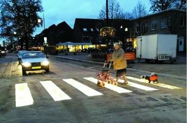 LED灯嵌入路面当斑马线,可据路况变化灯光及号志做出提醒